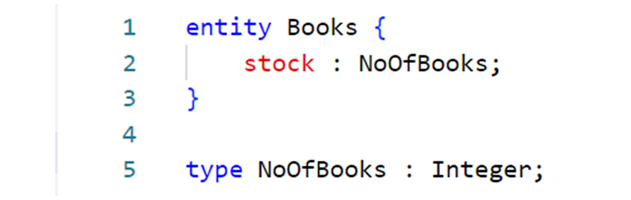 단순 타입: 예를 들어, NoOfBooks라는 타입을 정의하여 Integer 타입을 기반으로 할 수 있습니다. 이 타입은 Books 엔티티의 stock 요소에 사용될 수 있습니다.