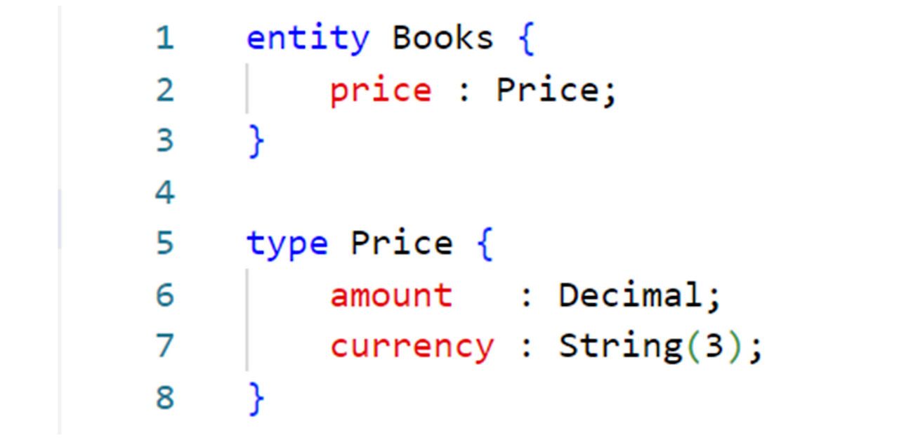 - CDL (CDS Definition Language): 이는 인간이 읽기 쉬운 구문으로 모델을 정의하는 데 사용됩니다. CDL은 도메인 모델, 서비스 모델 등을 선언적으로 정의하는 데 사용됩니다.