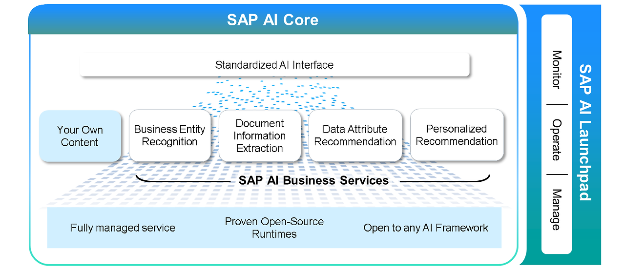 - SAP AI Services: 고객 경험을 풍부하게 하고 비즈니스 프로세스를 자동화.