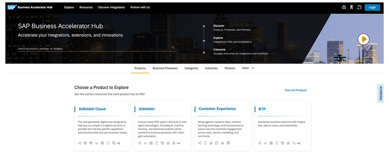 SAP Business Accelerator Hub는 SAP의 다양한 제품을 통합 및 확장하기 위한 샌드박스 API와 문서를 제공합니다.