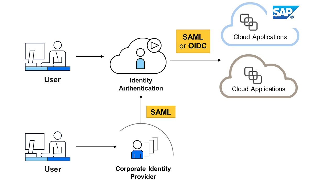 - 고객사의 기업용 IdP를 통합하고자 할 경우 SAP는 SAP Cloud Identity Services – Identity Authentication Service (IAS) 사용을 권장